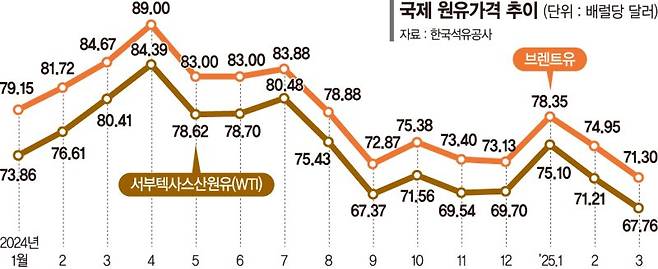 대한석유협회 관계자는 "올해 세계 석유시장은 수요대비 공급 초과가 확대될 것"이라며 "감산 정책 변동과 미국 제재, 관세 정책에 따른 시장 불확실 성이 높지만 원유 공급 잠재력이 충분해 유가 하락 요인이 될 것으로 본다"고 밝혔다.