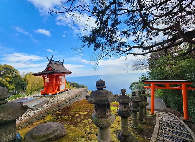 | ▲ 에노우라측후소 부지 내에 지어진 신사, 가스가샤(春日社) 설치 미술로 지어진 것이 아니라, 실제로 진좌제를 가지고 정식으로 기능하고 있는 신사다. |