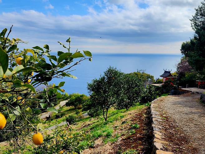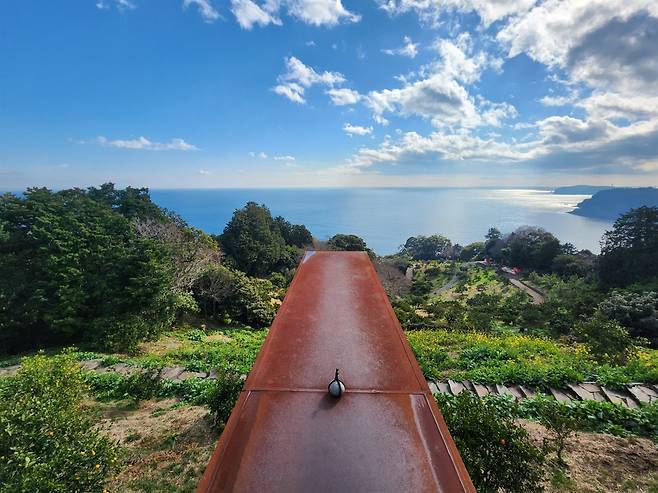 네부카와역은 청춘의 방랑벽을 자극하는 그런 감성 광고 속에서나 등장할 법한 아름다운 역이었다. 이곳에서 에노우라 측후소까지는 셔틀버스가 운행된다. 셔틀버스를 타고 10분 정도 달리자 시원하게 펼쳐진 겨울 바다를 배경으로 노란 귤이 탐스럽게 달려 있는 언덕에 도착했다. 에노우라 측후소는 귤밭 한가운데 지어져 있었다.약 1만5000평의 부지에 세워진 공간이지만 하루 방문객 수를 제한해 개인 공간을 충분히 확보할 수 있게 설계되었다. 그래서 입장은 예약제로만 운영된다.