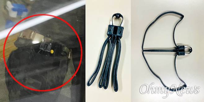 | ▲ 지난해 12월 3일 오후 비상계엄 선포 직후 국회에 투입된 육군특수전사령부 707특수임무단 대원이 오른쪽 허벅지 벨트에 휴대한 케이블타이(왼쪽, 사진을 밝게 보정함)과 미국 밀스펙플라스틱스 사에서 수갑 대용으로 개발해 국내외에 판매 중인 '코브라 커프스' 제품을 접은 모습과 펼친 모습(오른쪽). 서로 동일한 제품으로 추정된다. |