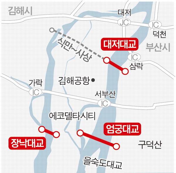 서부산권 숙원인 대저·엄궁대교 건설 사업이 우여곡절 끝에 착공에 들어갔다. 두 대교 인근에 건설되는 장낙대교도 오는 6월 첫 삽을 뜰 예정이어서 서부산권 교통난 해소에 크게 기여할 것으로 기대된다.