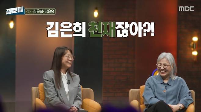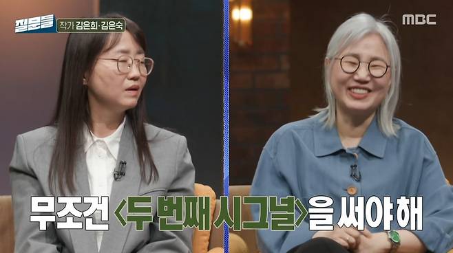1일 밤 MBC '손석희의 질문들'에는 한국 드라마계를 주도하는 작가 김은희, 김은숙이 출연했다. 이날 김은희는 "'시그널' 이후 시즌2까지 9년이 걸렸다"며 "지금 '두 번째 시그널'을 준비 중"이라고 밝혔다.
