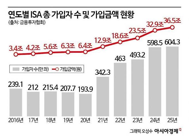 재테크에 관심이 있다면 한 번쯤 들어봤을 법한 ISA. ISA는 Individual Saving Account의 줄임말로 '개인종합자산관리계좌'로 불린다. 국내 상장주식부터 펀드, ETF, 리츠(부동산투자신탁), 주가연계증권(ELS), 예·적금 등 다양한 금융상품을 한 곳에서 관리하고 투자할 수 있는 절세형 상품이다. ISA는 2016년 종합적인 자산관리로 재산 형성을 돕기 위해 출시됐다. 금융투자협회에 따르면 출시 이후 9년 만에 가입자 수가 604만3000명, 가입금액은 36조5408억원을 기록했다.