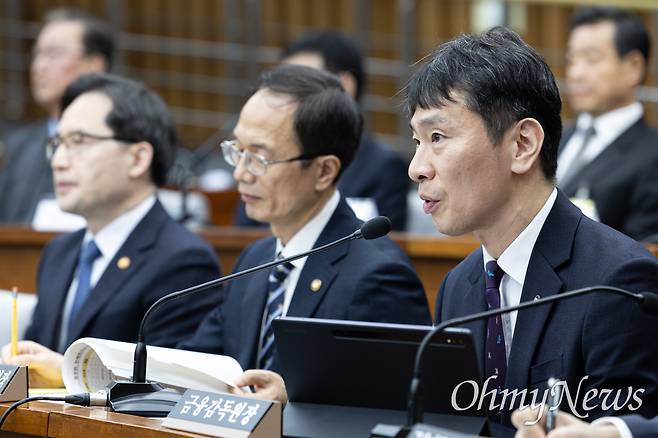 | ▲ 이복현 금융감독원장이 18일 오전 서울 여의도 국회 정무위원회에서 열린 홈플러스·MBK 파트너스 및 삼부토건 관련 긴급 현안질의에서 의원 질의에 답변하고 있다. |