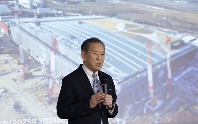 [고이케 아쓰요시 라피더스 사장이 지난 1일 일본 도쿄에서 열린 기자회견에서 반도체 생산 계획에 대해 말하고 있다. 라피더스는 올해 7월 시제품을 완성할 예정이다. (도쿄 교도=연합뉴스)]
