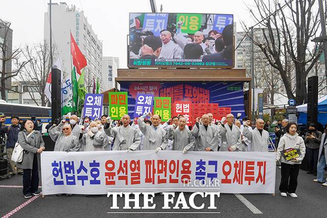 조계종 사회노동위원회는 "헌법재판소는 한국 사회를 지탱해 오고 있는 생명, 평화, 공정 등의 가치가 무너지고 민주주의의 근간이 흔들리는 파국적 상황을 조속히 마무리하고, 분열된 대한민국을 수습하기 위해서는 좌고우면할 것 없이 국민의 뜻에 따라 헌법수호기관으로서 역할을 다해 윤석열 파면을 결정할 것"을 촉구했다.