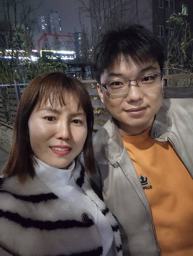 | ▲ 김경국씨 부부 두 사람의 잔잔한 미소에서 더없이 행복한 미래가 보이는 듯하다. 힘든 택배 현장이 흘리는 땀만큼이나 사랑이 영글어가는 곳이길 빈다. |