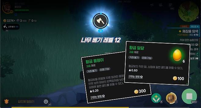 ③ 벌목 : 애벌레 및 장수풍뎅이 같은 희귀 재료 활용한 무한 파밍