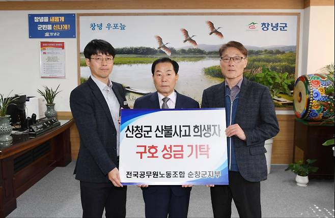 창녕군공무원노조는 산불 발생 사고로 실의에 빠진 유족을 돕기 위해 전국공무원노동조합 각 지부에서 온정의 손길이 이어지고 있다.