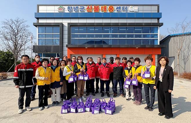 창녕군자원봉사협의회(회장 조점순)는 창녕군산불대응센터를 방문해 산불예방과 진화에 힘쓰는 진화대원 26명에게 간식 꾸러미를 전달했다.