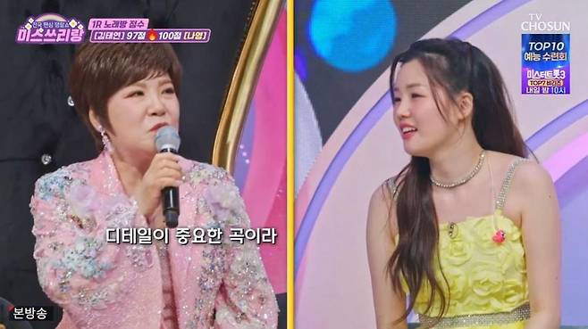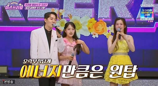 2일 방송된 TV조선 예능 프로그램 '미스쓰리랑' 마지막 회에는 가수 김연자, 진성, 양지은, 김태연 등 트로트 대선배와 역대 진 출신들이 총출동했다.