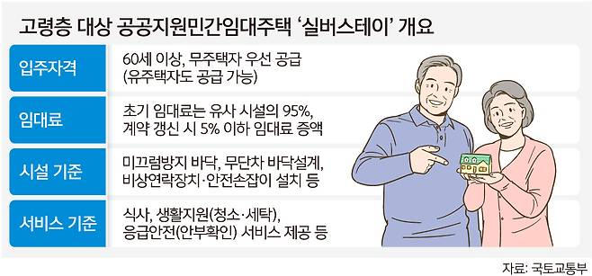 기존 노인복지주택 등 유사시설 시세의 95% 이하로 공급하고, 계약 갱신 시 5% 이하로 임대료를 증액하도록 한 것이 골자다. 무주택자에게 우선 공급되지만 잔여 세대는 유주택자도 입주 가능하다.
