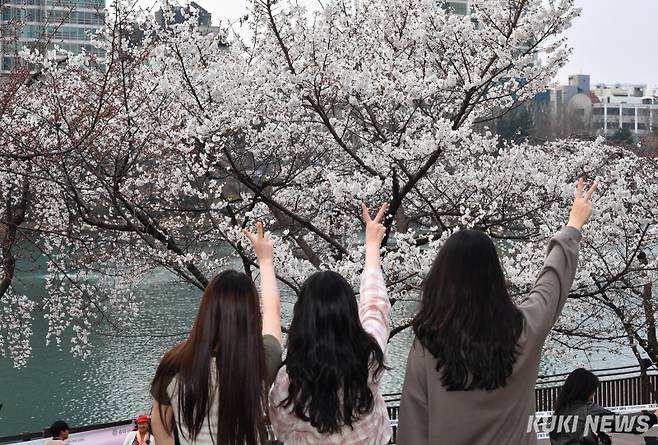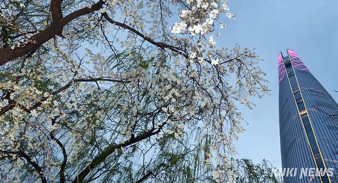 '더디게 오는 봄'올해도 지난해와 같이 벚꽃 개화시기가 늦어져 이번 주말이 되어야 활짝 피어난 벚꽃을 감상할 수 있을 것으로 보인다.