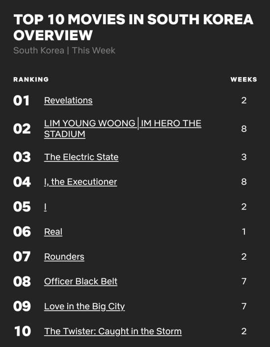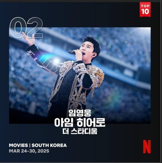 임영웅 '아임히어로 더 스타디움', 넷플릭스 대한민국 영화 TOP2