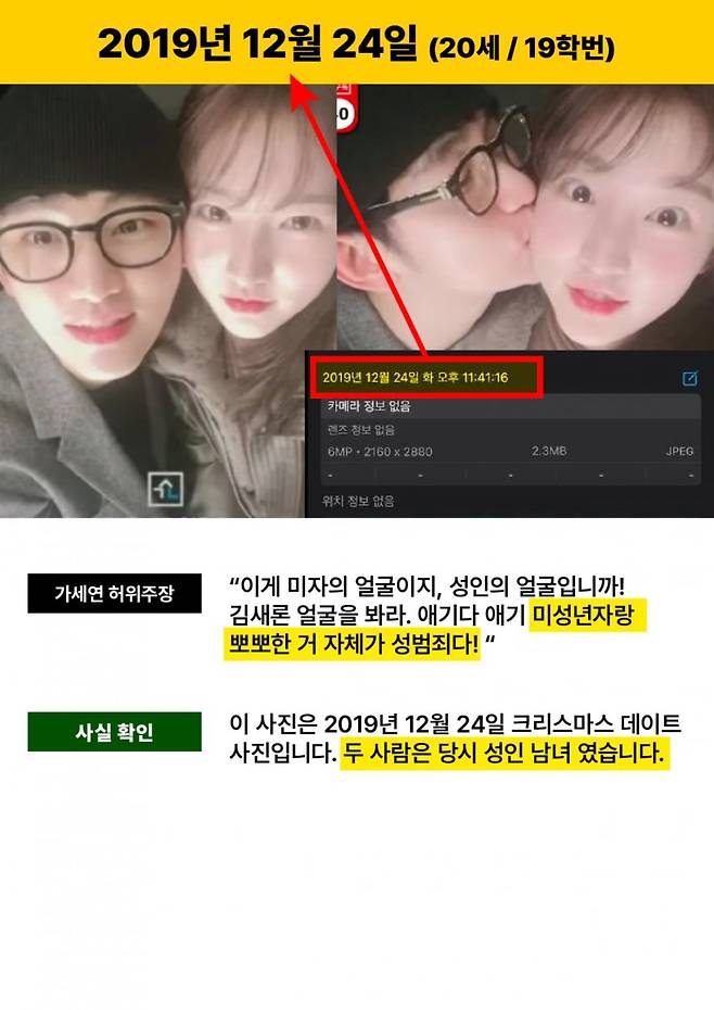 다만 김수현 측이 가세연의 증거를 인정한 것은 딱 두가지다. 2019년에 파리에서 찍은 속옷 가게 영상을 김새론에게 보낸 것과 2018년 11월 김수현 집에서 소주를 먹으며 김새론이 해준 음식을 먹은 사실이다. 다만 김수현 측은 2019년 파리 속옷가게 동영상 전송 시기는 김새론이 성인이 된 시점이며, 집에서 음식을 먹는 2018년 동영상은 당시 다른 가족도 있었고 사귄 사이가 아니었다고 주장했다.