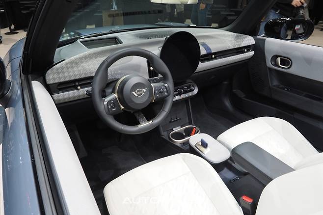 실내는 미니멀한 감각을 극대화했다. 클래식 미니의 헤리티지를 반영해 주요 버튼만을 남긴 미니 토글 바는 주행에 필요한 핵심 기능을 직관적으로 조작할 수 있게 한다. 대시보드 중앙에는 직경 240㎜ 원형 OLED 디스플레이를 배치해 미래적인 분위기를 연출하며 계기반, 내비게이션, 실내 공조 제어, 차 내 인포테인먼트 등 다양한 기능을 통합 제공한다.
