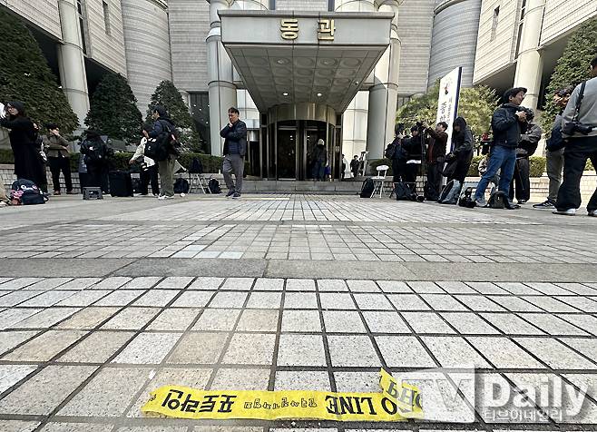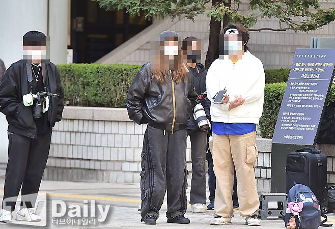 이날 일부 팬들이 법원을 찾아 뉴진스를 기다리고 있다.