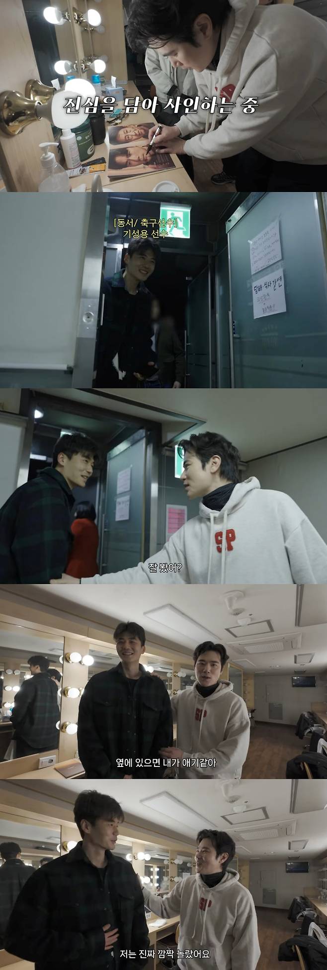 김강우는 "우리 동서 왔다"며 반갑게 맞았다. 이어 김강우는 기성용이 공연을 잘 봤는지 궁금해했고, 이에 기성용은 "너무 고생 많으셨다. 안 힘드세요?"라고 걱정을 드러내기도 했다.