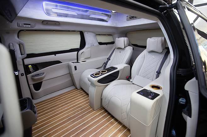 LM의 개조 차량은 단순한 외관 변화에 그치지 않는다. 실제 이용자의 생활 패턴을 분석한 후, 이를 반영해 차량을 프라이빗 오피스 또는 VIP 의전 차량으로 전환하는 방식이다. 특히 4인승 풀파티션 모델은 전면과 후석을 완전히 분리해 업무 중 통화, 회의 등 사생활 보호가 필요한 상황에서도 높은 활용도를 보인다. 차량 내부에는 32인치 스마트 모니터와 전동 테이블이 탑재돼 서류 작업이나 온라인 회의도 가능하도록 설계됐다.