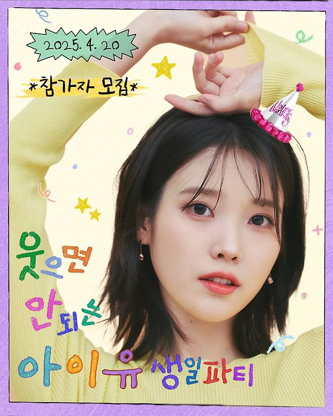 또 이어서 "따사로운 봄날, 특별히 잊지 못할 아이유의 웃으면 안 되는 생일파티에 여러분을 초대합니다. 생일파티 일자: 4/20(일)"이라며 소식을 전했다.