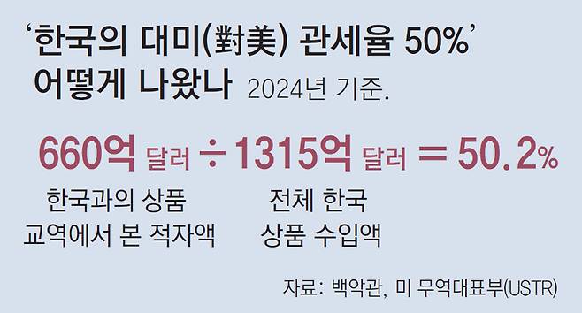 美 “한국 대미 관세율 50%” 황당 셈법… 무역적자를 수입액으로 나눠