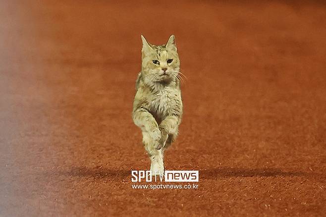 9회초 예상치 못한 상황이 발생했다. 외야에서 고양이가 전력 질주를 하며 그라운드로 뛰어든 것. 갑작스러운 등장에 경기는 잠시 중단됐다.