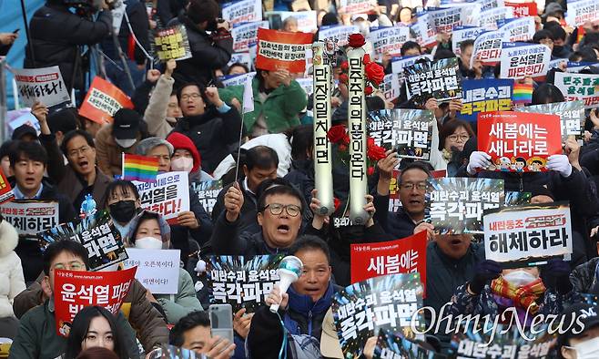 이날 한남대로에 무대를 마련한 촛불행동은 입장문을 내고 "우리의 진짜 싸움은 이제부터다. 내란 세력은 틈을 주면 살아난다"라면서 "민주정부 건설, 내란세력청산 투쟁으로 쉼 없이 몰아쳐 가야 한다"라고 밝혔다.