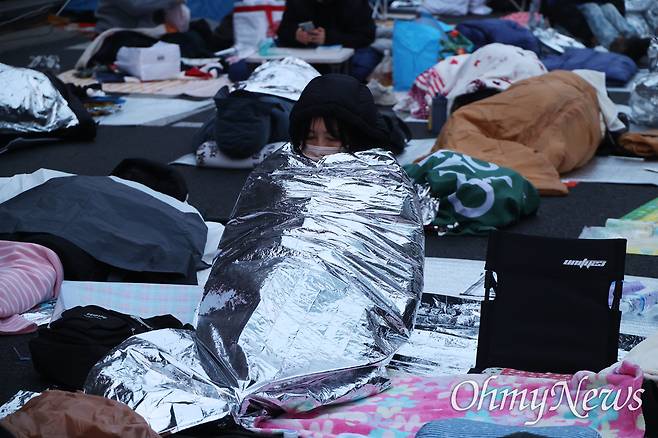 대통령 관저 앞 한남대로에서도 윤석열의 탄핵을 촉구하는 이들이 밤샘 집회를 벌였다. 은박담요를 덮고 도로에서 밤을 보낸 김아무개(52)씨는 "전남 나주가 고향인데 5.18민주화운동 당시 대학생 형·누나들이 나주까지 피신을 왔었다. 그런 일이 또다시 일어나면 안 된다는 생각으로 나왔다"며 눈시울을 붉혔다.