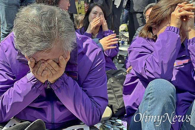 | ▲ 이태원 참사 유족들이 4일 오전 헌법재판소가 있는 안국역 인근에서 윤석열 파면이 확정되자 눈물을 흘리며 반기고 있다. |