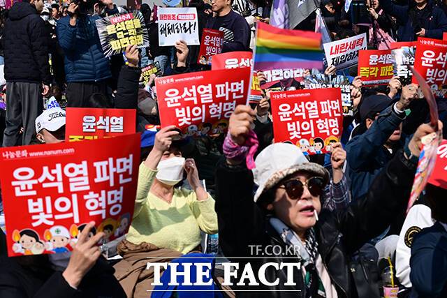 '만장일치 8:0 파면' 촉구하는 탄핵찬성 집회 참가자들 [TF사진관]