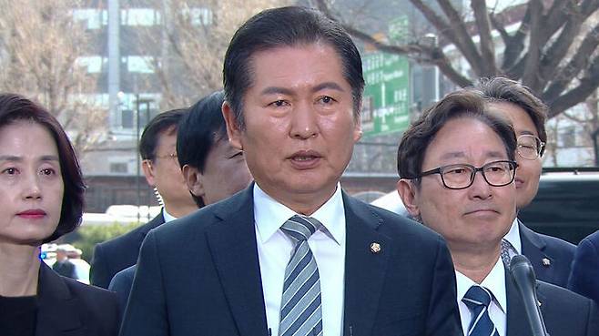 윤 대통령 국회 소추위원인 정청래 법제사법위원장은 오늘 오전 10시 20분쯤 헌재 대심판정 입정에 앞서 "내란 우두머리 피의자 윤석열은 8 대 0 만장일치로 파면돼야 한다"고 말했습니다.