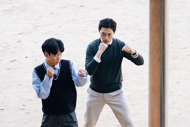 사실 생물학적 부자(父子) 관계의 진위를 파악하기 위해 서로의 하자를 증명하는 과정은 극의 전개를 위해 필요한 장면에 해당된다. 그중 의미적으로 살아남는 장면은, 수많은 다름에도 불구하고 같은 편의점 도시락을 동시에 선택하는 모습과 같은 사소한 지점에 불과할 정도다. (서사적으로 두 인물 간의 유대감과 시간을 쌓는 과정으로도 해석할 수 있지만, 영화는 이를 극의 흐름을 위해 다소 포기한 듯 보인다.) 오히려 영재의 부탁으로 찾아간 학교를 통해 그가 심장병을 앓고 있다는 사실과 과거 육상을 했다는 사실, 그리고 아버지 동석이 살아 있다는 사실을 알게 되는 지점이 이 영화의 서사를 한발 더 나아가게 만든다.