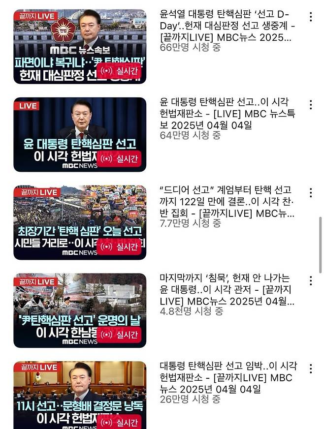 4일 오전 11시 헌법재판소가 윤석열 대통령 탄핵심판 사건의 선고 재판을 개최한 가운데, 이를 생중계한 MBC 채널에.150만 명 이상의 시청자가 몰렸다.