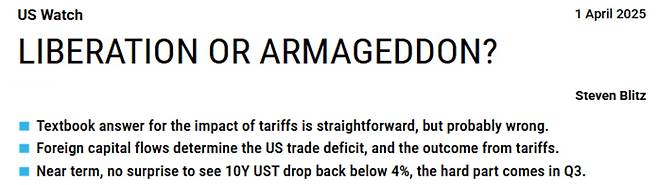 트럼프 대통령과 베센트 재무 장관은 그동안 공공연하게 "10년물 금리의 하락이 우리의 목표"라고 해왔습니다. 막대한 재정적자를 안고 있는 미국 입장에선 국채 금리를 낮추고 이자 비용을 줄여야 하기 때문입니다. 하지만 이런 시나리오대로면 관세 정책이 '금리 낮추기' 목표를 좌절시킬 수 있습니다. 관세를 통한 무역적자 축소 정책이 결국 장기 금리 상승이라는 부메랑으로 돌아올 수 있다면, 트럼프 정부는 정책 우선순위를 어떻게 조정하게 될까요?