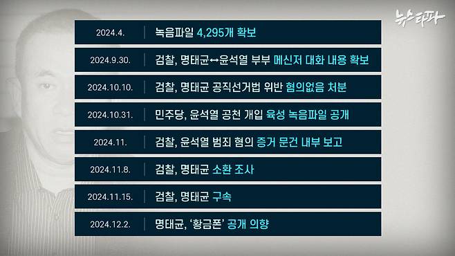 이런 상황에서도 계속해서 회자되는 의문이 있다. 윤 씨가 내란을 일으킨 날짜, 그러니까 대체 왜 ‘12월 3일’이냐는 거다. 뉴스타파는 나름의 답을 갖고 있다. 바로, ‘명태균 게이트’다.