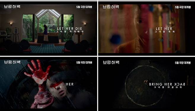 독창적 공포로 놀라운 흥행 기록을 세운 영화 '톡 투 미'의 대니 & 마이클 필리포 감독의 신작이자 '유전', '미드소마' 등 공포 영화 명가 A24가 제작한 영화 '브링 허 백'이 5월 개봉을 확정 짓고 티저 포스터와 티저 예고편을 공개했다.