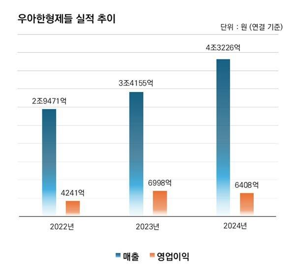 배달의민족 운영사 우아한형제들은 지난해 연결 기준 매출과 영업이익이 각각 4조3천226억원, 6천408억원으로 집계됐다고 4일 공시했다.
