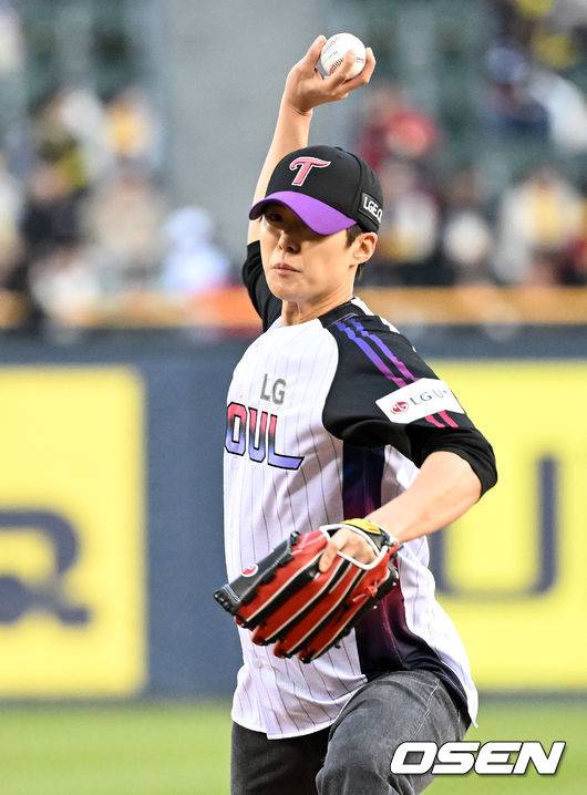 경기에 앞서 배우 공명이 시구를 하고 있다. 2025.04.04 /sunday@osen.co.kr