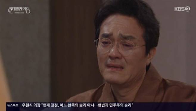 4일 KBS2TV 일일드라마 ‘신데렐라 게임’에선 여진(나영희 분)이 명지(지수원 분)와 몸싸움을 하다가 혼수상태에 빠진 모습이 그려졌다.