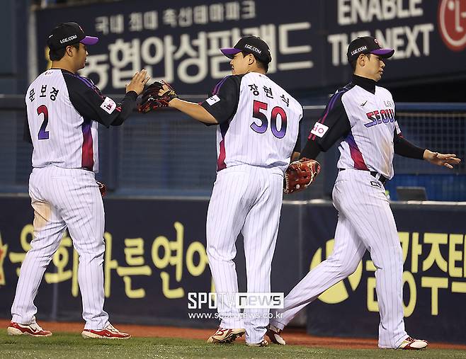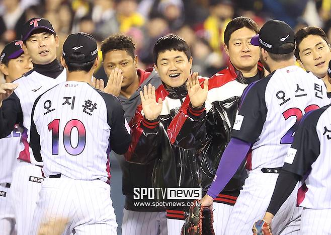 장현식, LG 동료들과 하이파이브