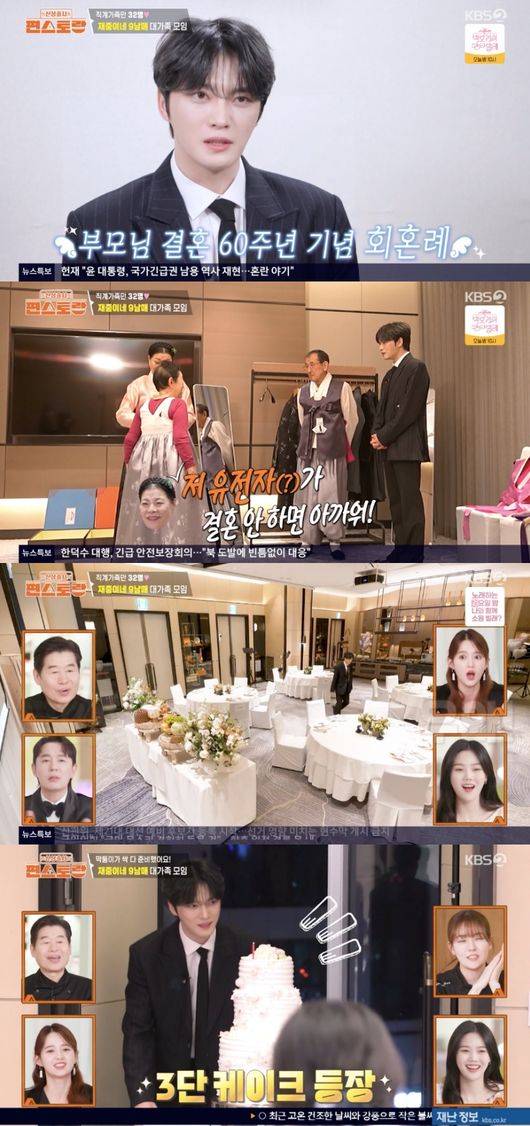 4일 방송된 KBS2 예능 '신상출시 편스토랑'(이하 '편스토랑')에서는 김재중이 부모님의 결혼 60주년을 맞이해 특별한 '회혼례'를 준비하는 모습이 그려졌다.