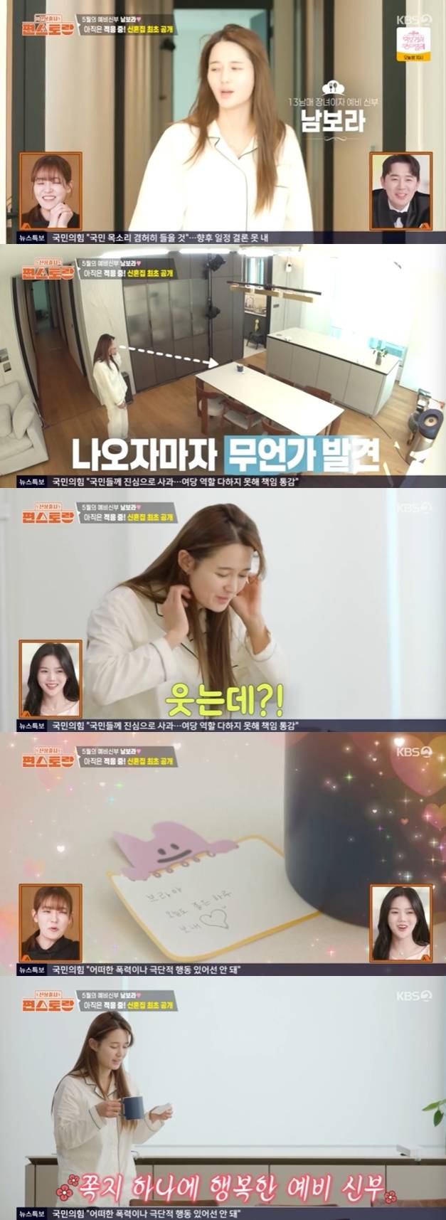 동갑내기 사업가와 5월에 결혼하는 남보라는 신혼집을 공개했다. 남보라는 "이번에 이사했다. 계약 이슈로 좀 일찍 들어왔다"라고 밝혔다.
