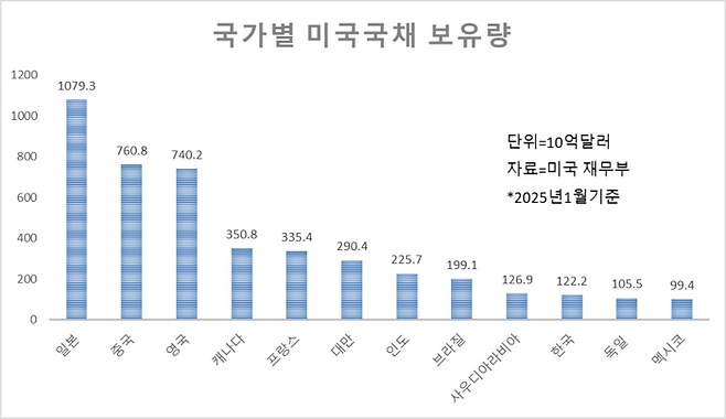 일견 황당한 얘기지만 미국 입장에서는 계획이 실현된다면 여러 가지 목적을 달성할 수 있다. 미국 재무부에 따르면 세계 각국이 보유한 미국 국채는 1월 기준으로 8조5265억 달러다. 일본이 1조793억 달러를 보유해 가장 많고 다음으로 중국(7608억 달러), 영국(7402억 달러), 캐나다(3508억 달러), 프랑스(3354억 달러)도 많은 규모의 미국 국채를 갖고 있다.