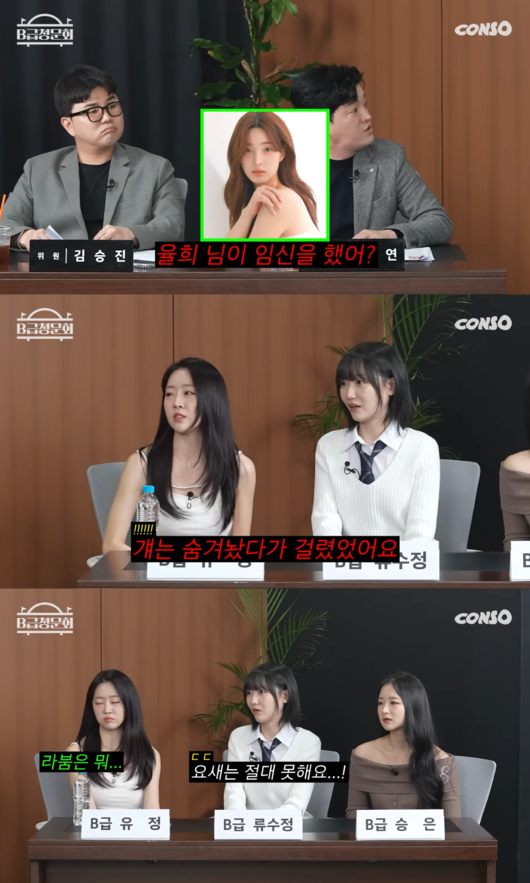 남호연은 "라붐에서 휴대폰을 못 쓰게 하는데 율희 님이 임신을 했냐"고 의아해 했고 유정은 "걔는 숨겨놨다가 걸렸었다"고 말해 웃음을 자아냈다.