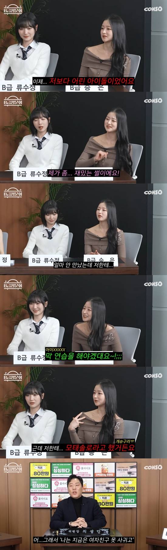 지난 4일 공개된 유튜브 채널 'B급 청문회'에는 '군통령 출신 3세대 아이돌 모셔봤습니다'라는 영상이 게재됐다. 이날 라붐 유정과 러블리즈 류수정, 밴디트 승은이 게스트로 출연했다.