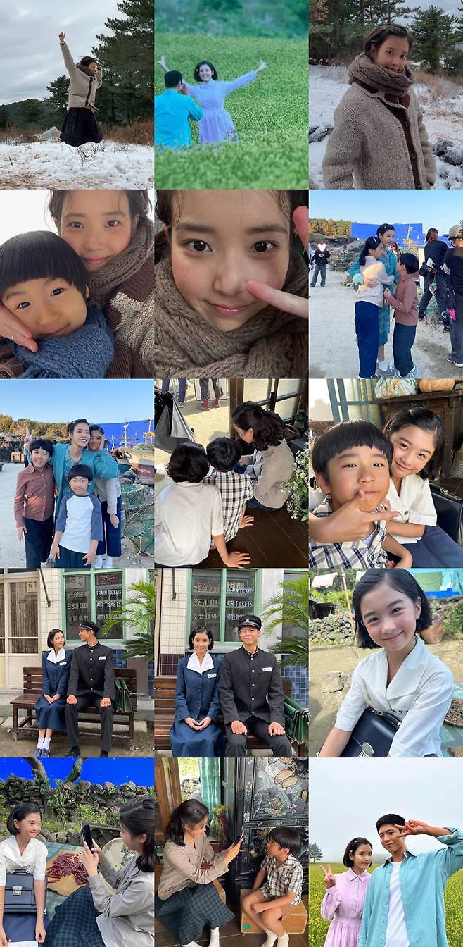 공개된 사진 속 아이유는 극 중 애순이, 금명이를 1인 2역으로 연기한 비하인드 사진을 여러 장 게재했다. 관식이 박보검과의 투샷이 눈길을 끈다. 꼬질꼬질한 모습의 투샷도 공개하며 귀여운 매력을 드러냈고, 극 중 자녀들의 사진도 함께 올려 훈훈함을 자아냈다.