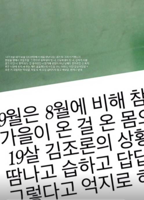김보라는 "네가 11살 내가 16살 오디션장에서 처음 만난 너는 내가 뭐 그리 신기했는지 한참을 옆에서 조잘조잘. 그 연으로 중학생이 된 너. 고등학생이 된 너. 갑자기 차를 끌고 오던 너. 편지 받는 걸 좋아했던 너였기에 생일이 아닌 날에도 문자로든 손 쪽지로든 너한테 편지 써주는 재미 쏠쏠했는데 사진첩 보니 이때 난 이런 감성이었네"라며 고인과의 추억을 회상했다. 또한 "이제는 두번 다시 볼 수 없는 인연이라 해도 어느순간 함께했다는 것은 그것대로 좋지 않은가"라는 글을 더했다.