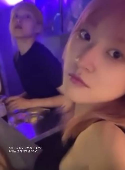 김보라는 "말하느라 밥도 잘 안먹던 조론아. 이제는 밥 다먹고 말해라"라는 글을 더하며 영상을 게재했다. 영상 속 김새론과 김보라는 핑크 헤어스타일을 한 채 식사를 하고 있는 모습이다.