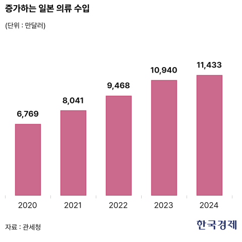 작년 일본 의류 수입액 1억1433만달러(1650억원)