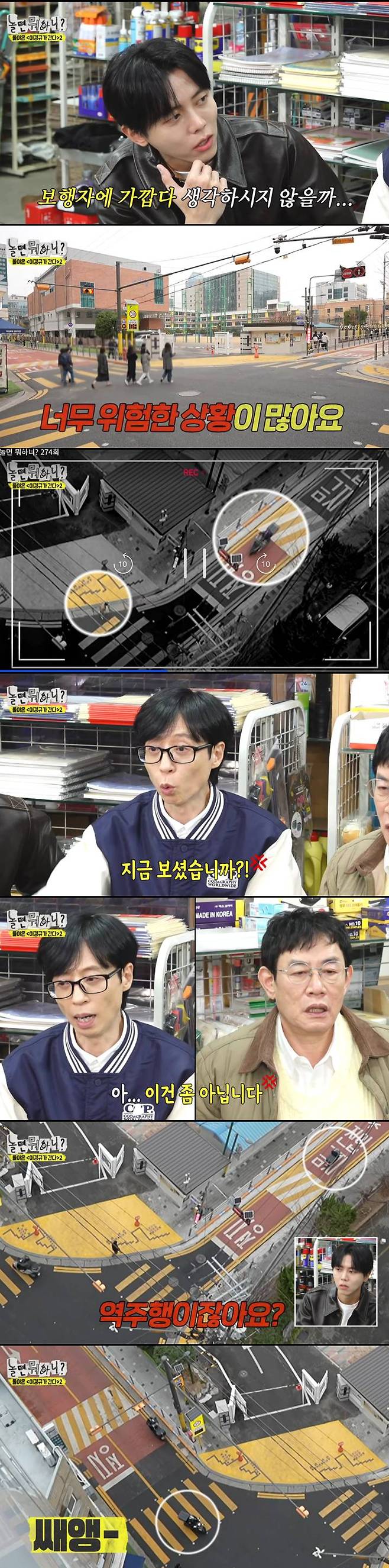 유재석이 어린이보호구역에서 과속하고 역주행하는 오토바이를 보며 분노했다.